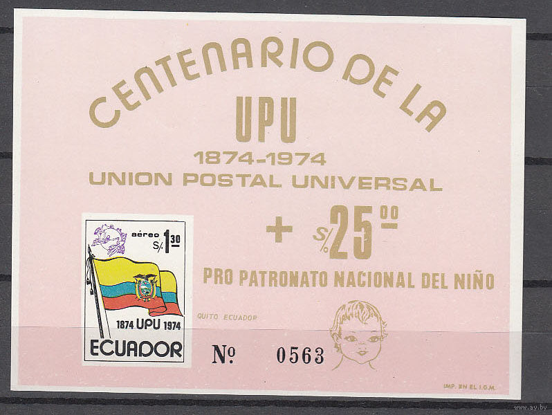 Всемирный почтовый союз. Эквадор. 1974. 1 блок. Michel N бл67 (50,0 е)