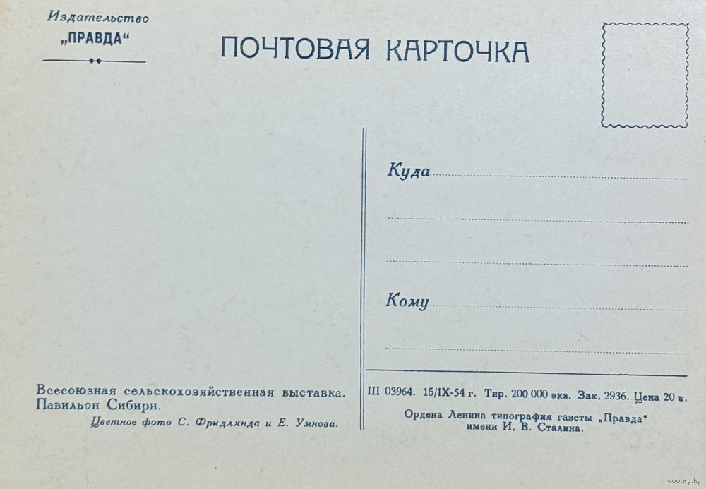 Всесоюзная сельскохозяйственная выставка Павильон Сибири 1954