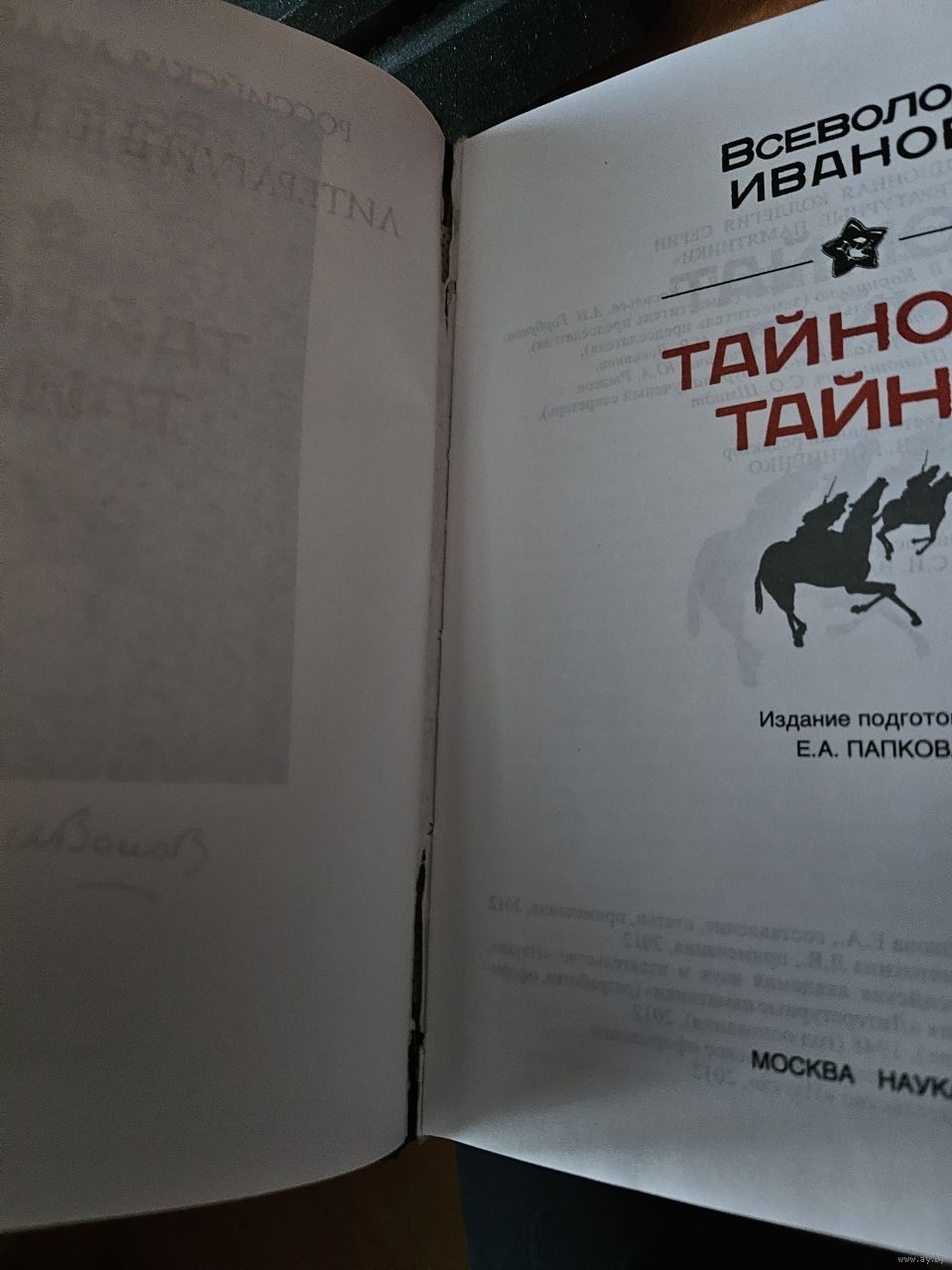 Один из блистательных литературных памятников XX в. - книга рассказов Вс.Иванова "Тайное тайных" (1926). Впервые после 1927 г. рассказы, составившие книгу, печатаются по первому изданию, без поздних редакторских и цензурных искажений текста. В раздел "Дополнения" включены рассказы Вс.Иванова 1916-1921 гг., подготовившие появление книги "Тайное тайных", большинство из них публикуется впервые; рассказы и повести второй половины 1920-х годов, написанные в ключе "Тайное тайных"; без купюр представлена переписка Вс.Иванова и А.М.Горького 1924-1928 гг.