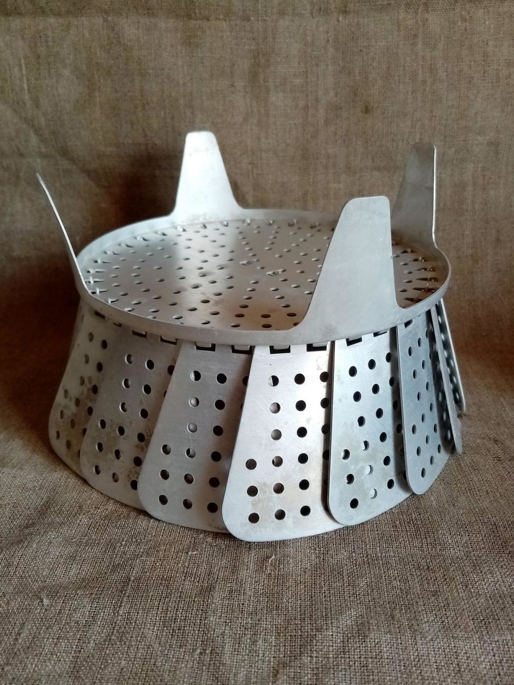 | на фото, алюминий. Поврежденно крепление одного из лепестков, на работоспособность не влияет ) | |