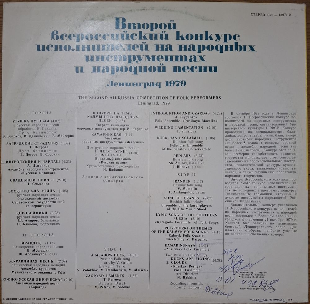 Второй Всероссийский Конкурс Исполнителей На Народных Инструментах И Народной Песни. Ленинград 1979.