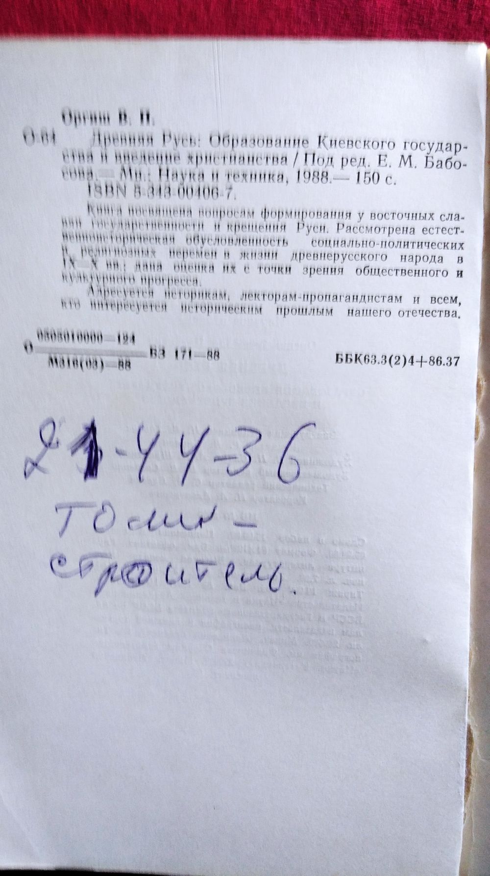 ВАЖНО! Это предмет б/у, никаких возвратов и компенсаций. Перед выставлением лот всегда просматривается на недочеты, которые фиксируются на фото и в описании к лоту. В книгах могут встречаться владельческие \ дарственные надписи на форзацах и титульных листах; в томах учебной, справочной, профессиональной и специализированной литературы – пометки, подчёркивания и др., в целом не влияющие на чтение и восприятие информации. Возможны недочёты, вызванные временем или хранением: потёртости книжного блока, пожелтение страниц, пятна, мелкие надрывы, штампы, владельческие экслибрисы. Если в описании книги (фото, текст) не указано приложение (CD, карты и другое), то его нет. По телефону на вопросы о состоянии книги (количестве страниц, оглавлении, количестве иллюстраций) - не отвечаю в силу того, что таких подробностей о каждой книге я просто не могу помнить. Просьба задавать подобные вопросы в мессенджеры. Уточню — отвечу.