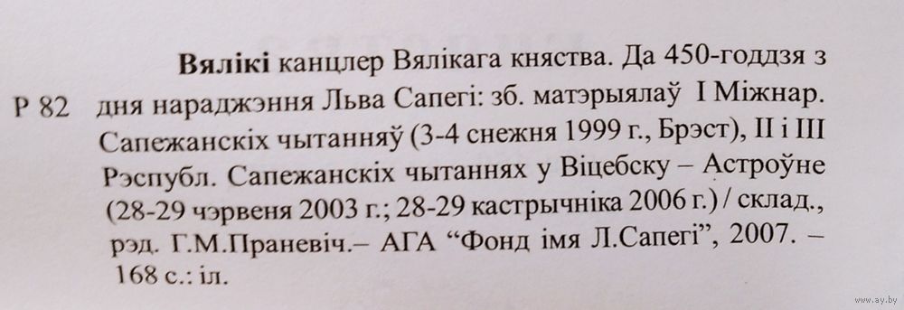 Вялікі канцлер Вялікага княства: да 450-годдзя з дня нараджэння Льва Сапегі. Зборнік матэрыялаў I Міжнародных Сапежанскіх чытанняў ў Віцебску, II і III Рэспубліканскіх Сапежанскіх чытанняў у Віцебску -Астроўне. Складальнік і рэдактар Г. М. Праневіч. Мінск : Фонд імя Л. Сапегі, 2007 г. 167 с. Мяккая вокладка.