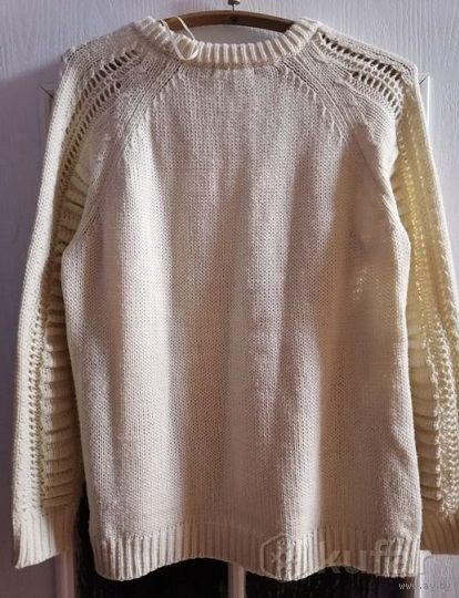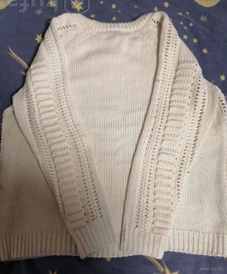 Красивая вязаная кофта на р-р 48-52 в отличном состоянии, дефектов нет. ПОГ 53см, ПОБ 55см, длина по спинке от плеча 67см, длина рукава от горловины 70/45см. Состав акрил 100%. Очень хорошо тянется.