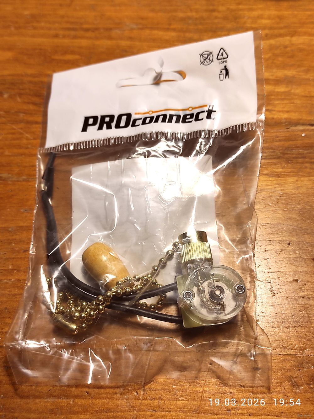 Выкл-дергалка для бра с проводом и цепочкой золото 270мм