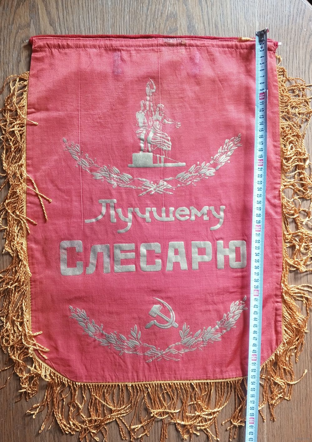 Вымпел Лучшему слесарю СССР 54х39 см (размер без бахромы). Двухсторонний.