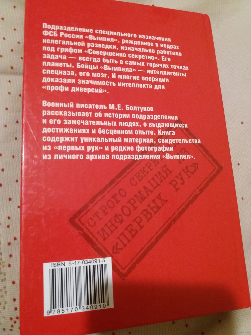 Военный писатель М.Е.Болтунов рассказывает об истории подразделения и его замечательных людях, о выдающихся достижениях и бесценном опыте. Книга содержит уникальный материал, свидетельства из "первых рук" и редкие фотографии из личного архива бойцов подразделения "Вымпел".