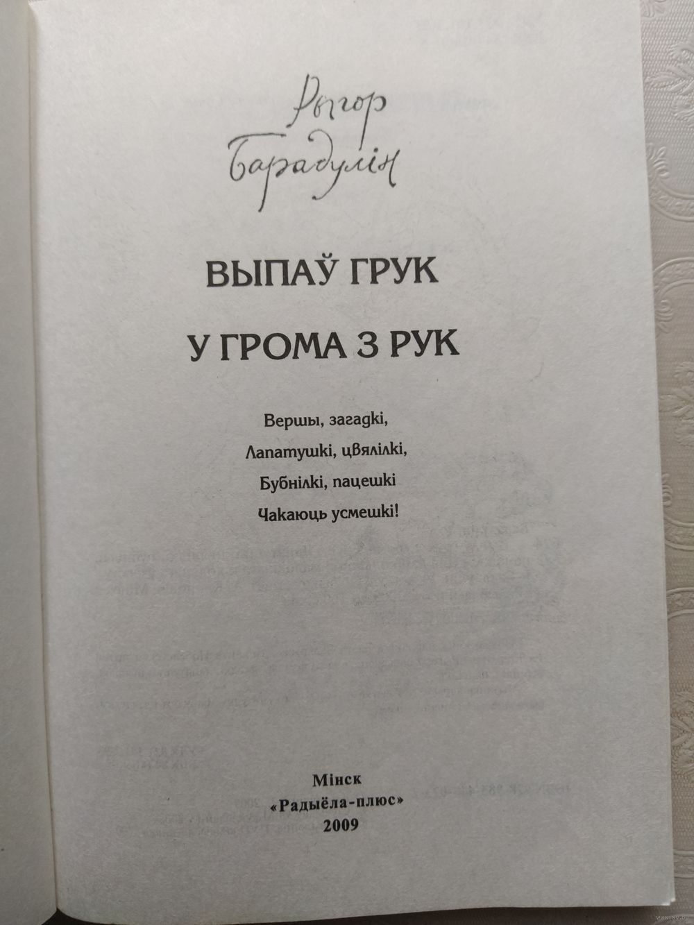 У кнігу народнага паэта Беларусі Рыгора Барадуліна ўвайшлі вершы, загадкі, лапатушкі, цвялілкі, бубнілкі, пацешкі. Мяккая вокладка, 160 старонак