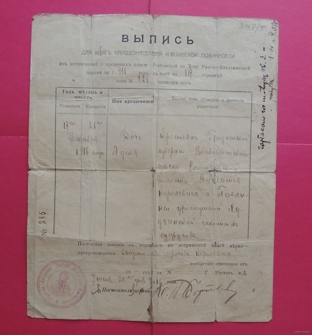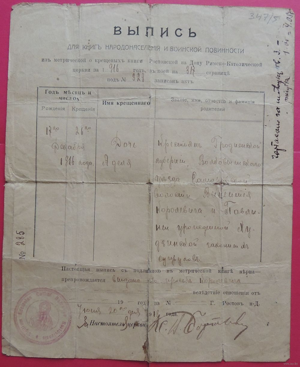 Выписка из книги народонаселения и воинской обязанности, Ростовская церковь, 1918 г.