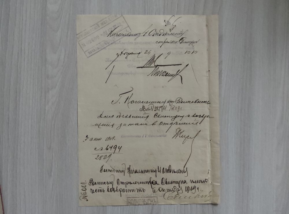 Выписка из резолюции Начальника Николаевской ж.д.1909 год.