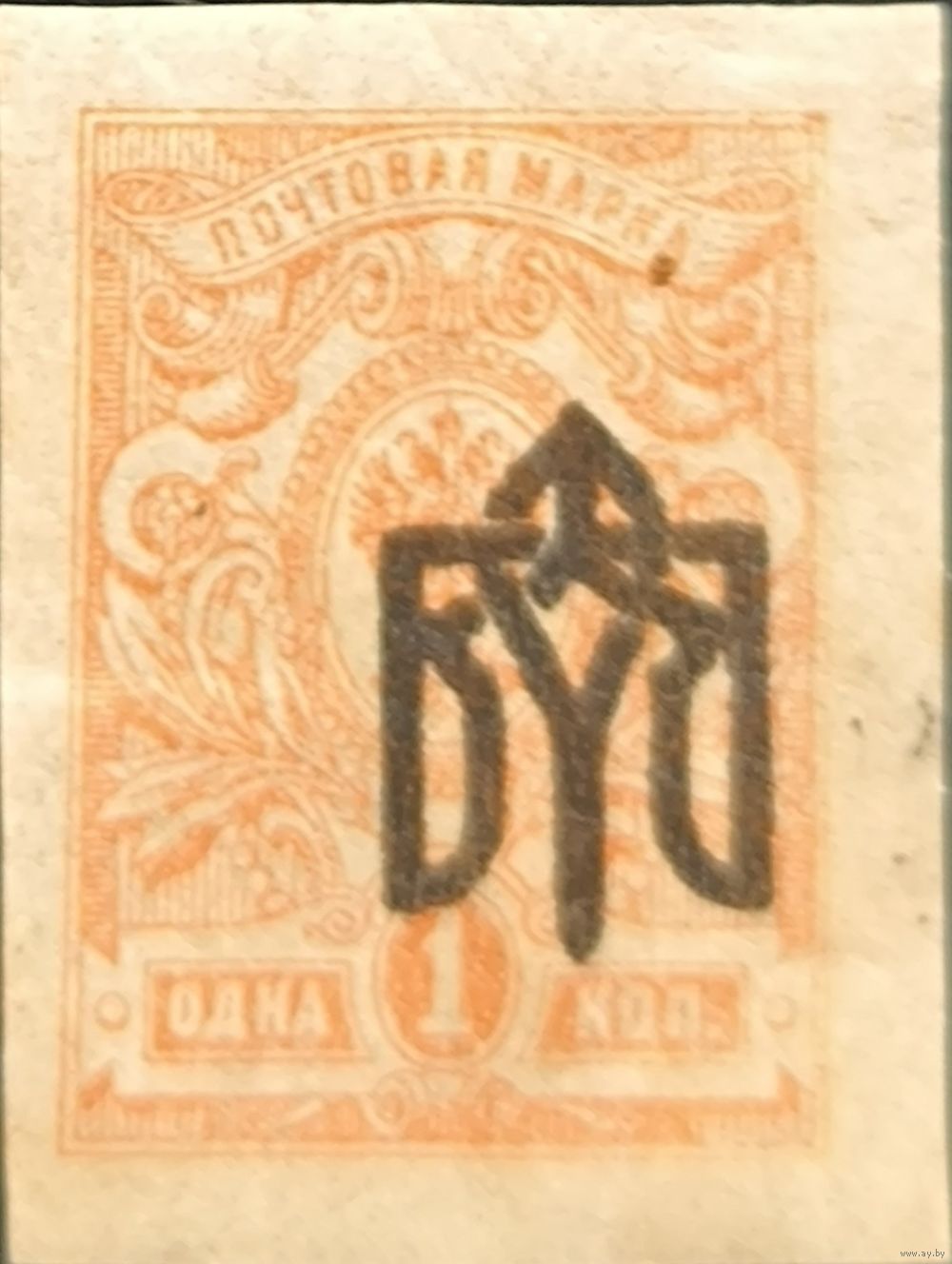 Выпуск Украинской державы. 1918г.Одесса-3. Малый. № 57. 1 коп. Перевернутая надпечатка.