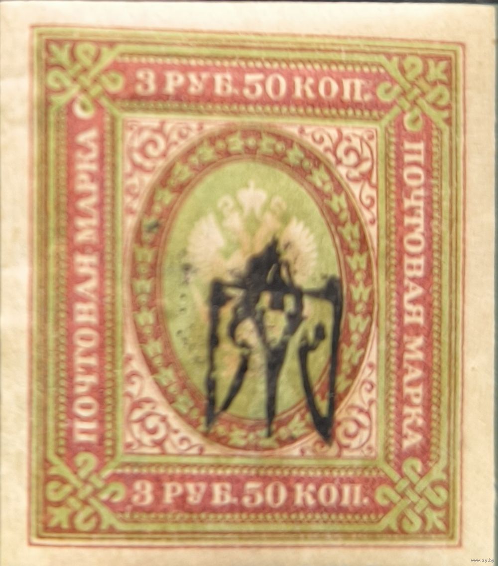 Выпуск Украинской державы. 1918г. Харьков-2. Средний. № 31. 3р 50 коп. Перевернутая надпечатка.