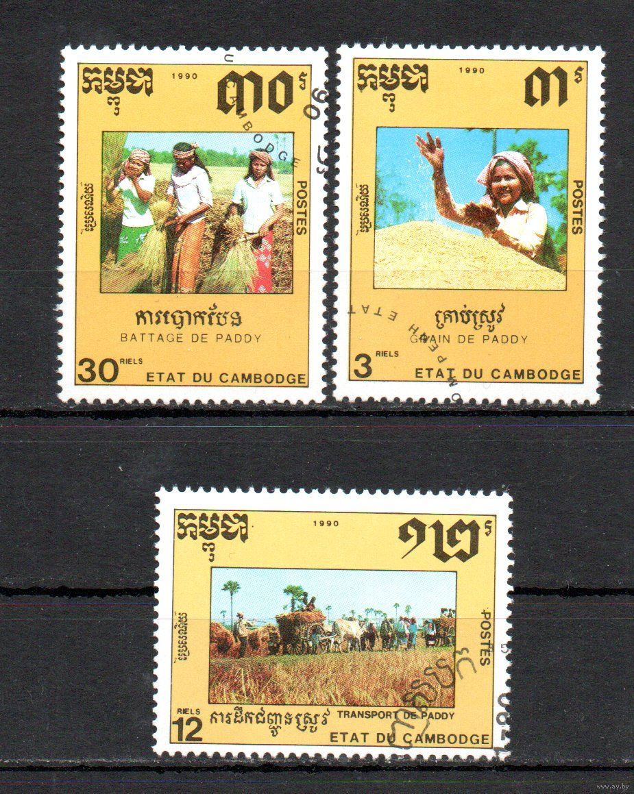 Выращивание риса Камбоджа 1990 год серия из 3-х мрок