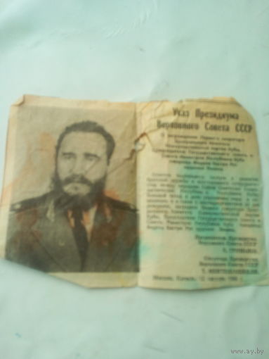 Вырезка из газеты "Награждение Фиделя Кастро"