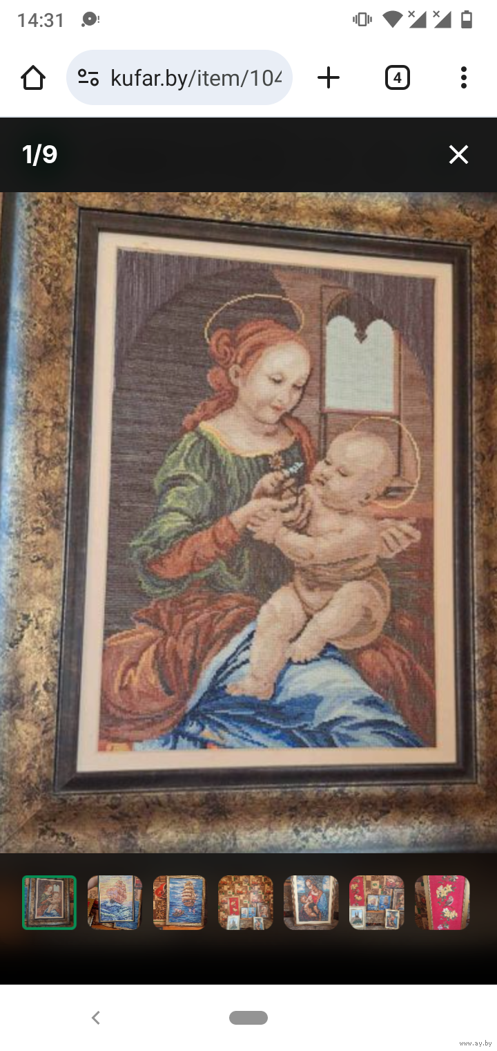 Картина Модонна Бенуа вышета руками, размер 27×40 без рамки,45×57.5 с рамкой.