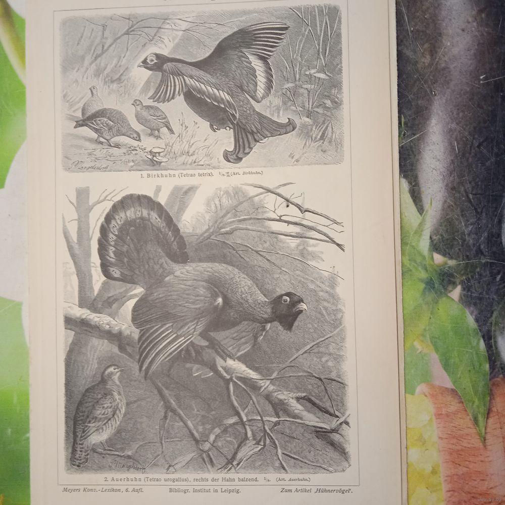 Watvogel . 1. 2. Энциклопедическая гравюра Германия конец 19века 24х16см.