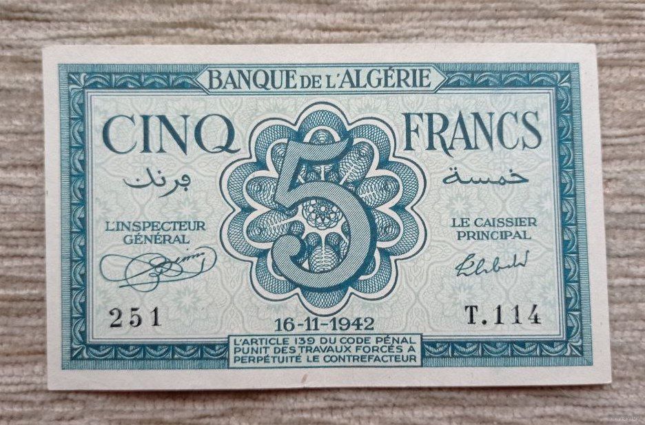 Werty71 Алжир 5 франков 1942 банкнота
