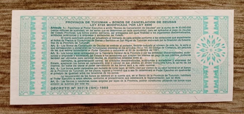 Werty71 Аргентина 1 аустраль 1991 UNС банкнота Провинция Тукуман