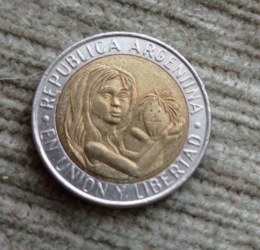 Werty71 Аргентина 1 песо 1996 50 лет ЮНИСЕФ БИМЕТАЛЛ