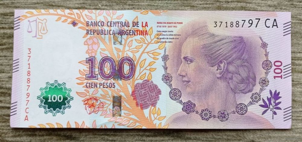 Werty71 Аргентина 100 песо 2016 2017 UNC банкнота Ева Перон Эвита 2012 2014 2015