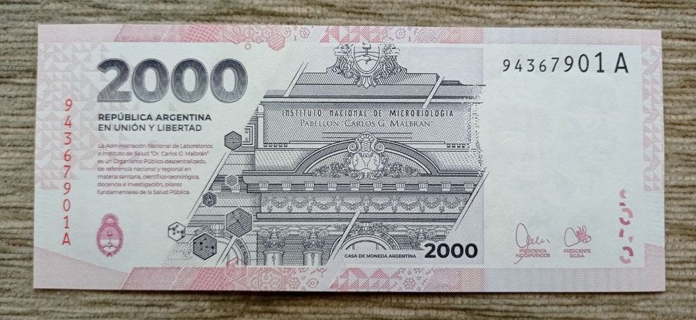 Werty71 Аргентина 2000 песо 2023 UNC банкнота