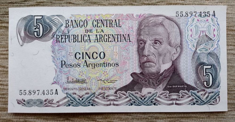 Werty71 Аргентина 5 Песо 1984 UNC банкнота
