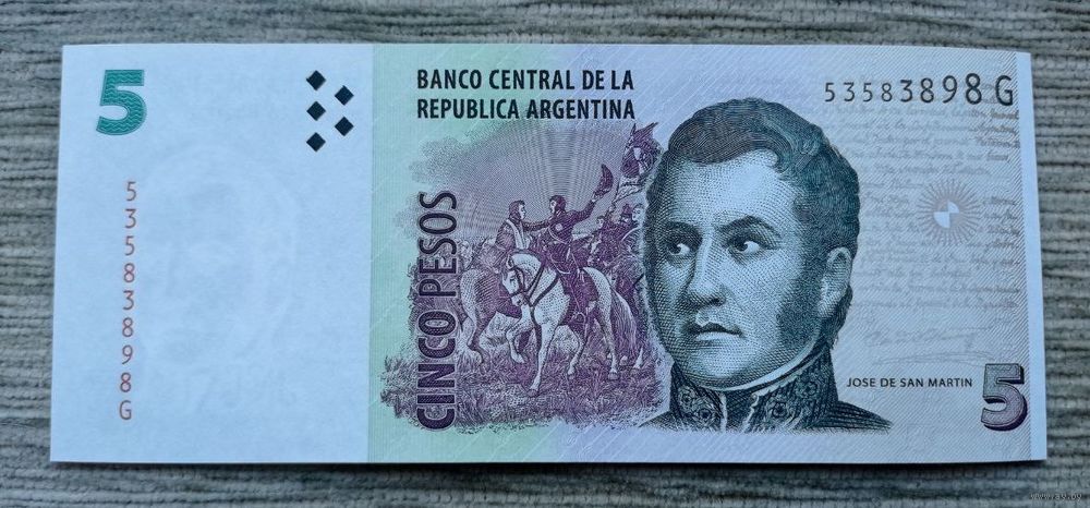 Werty71 Аргентина 5 песо 2013 UNC банкнота