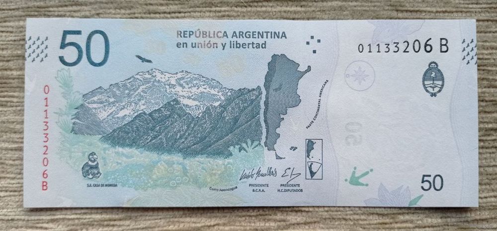 Werty71 Аргентина 50 песо 2018 UNC банкнота птица андский кондор