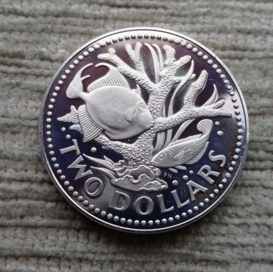 Werty71 Барбадос 2 доллара 1973 Рыба Коралл платицериум