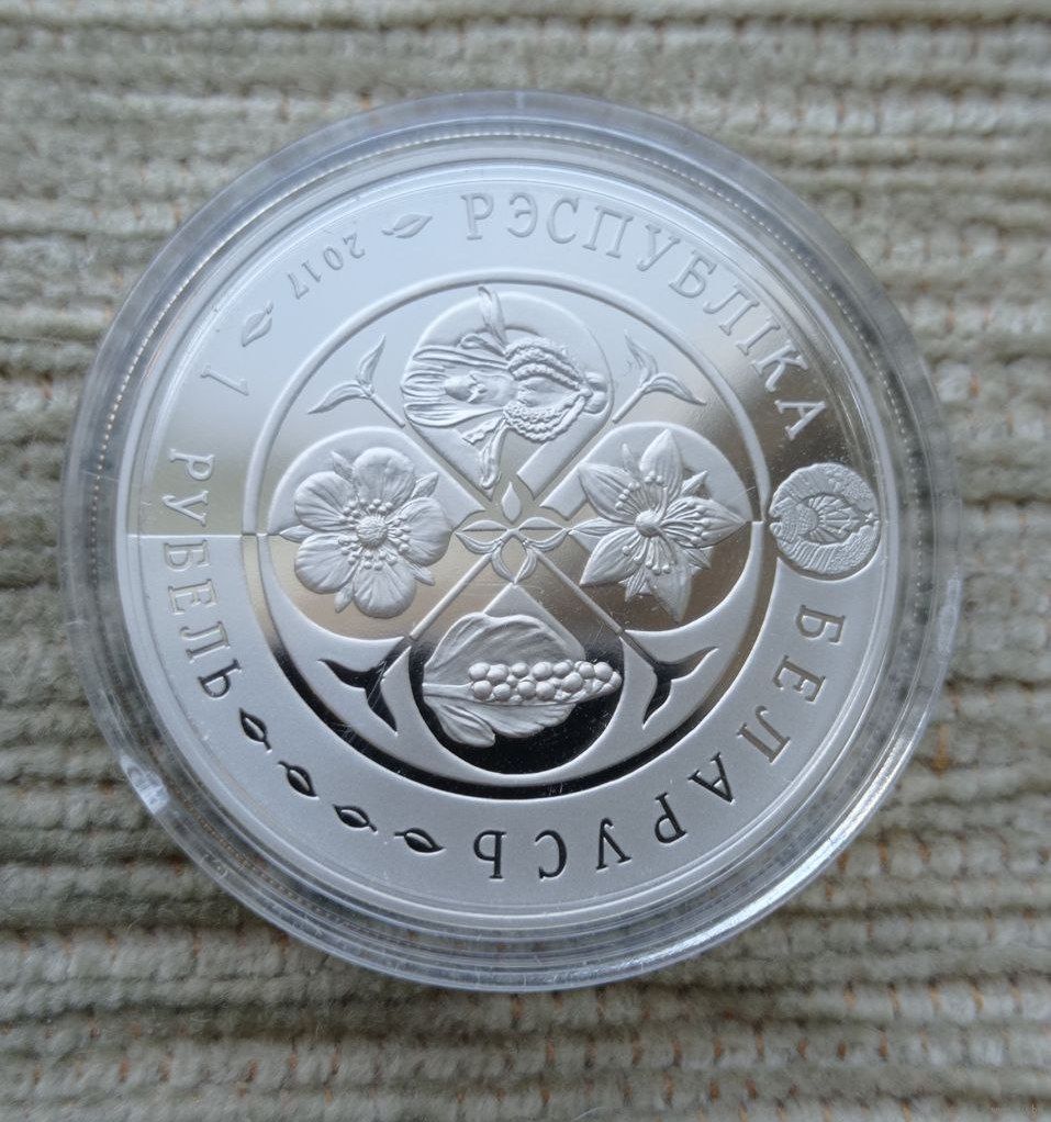 Werty71 Беларусь 1 рубль 2017 Лапчатка скальная Возрожденные растения Дубровка скальная