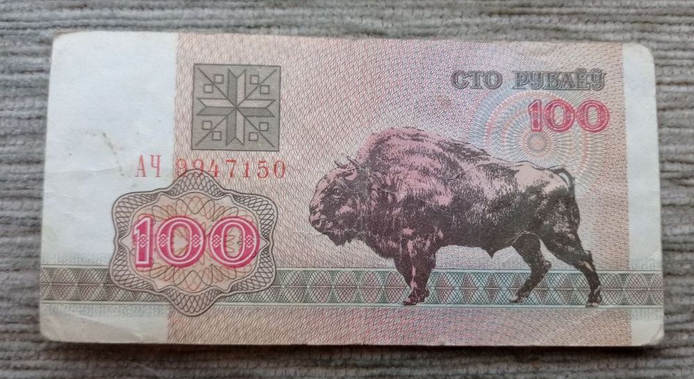 Werty71 Беларусь 100 рублей 1992 серия АЧ банкнота Зубр