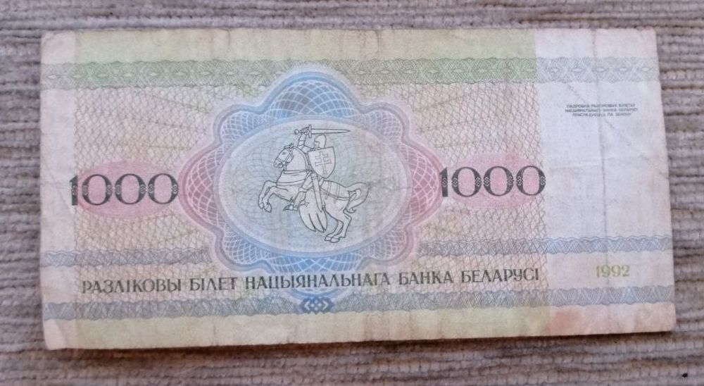 Werty71 Беларусь 1000 рублей 1992 серия АК банкнота