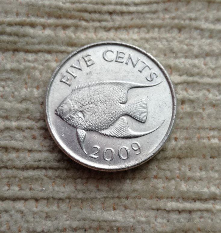 Werty71 Бермуды Бермудские острова 5 центов 2009 Королева в годах Рыба