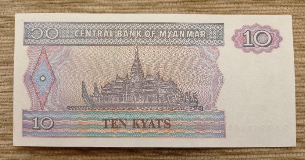 Werty71 Бирма Мьянма 10 кьят 1994 1995 1996 UNC банкнота