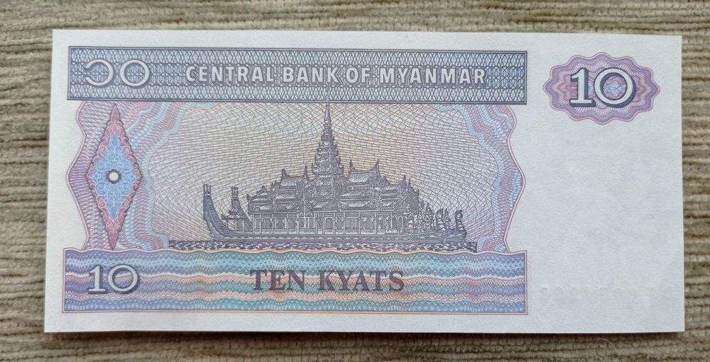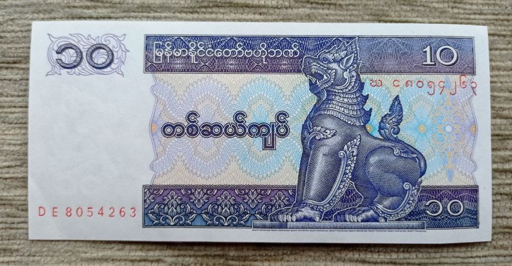 Werty71 Бирма Мьянма 10 кьят 1994 1995 1996 UNC банкнота