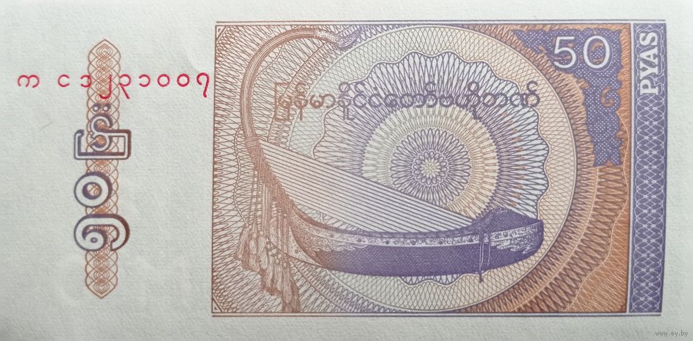 Werty71 Бирма Мьянма 50 пья пайс 1994 UNC Банкнота Корабль