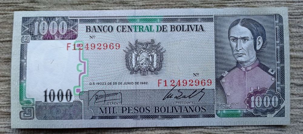 Werty71 Боливия 1000 песо 1982 банкнота боливиано