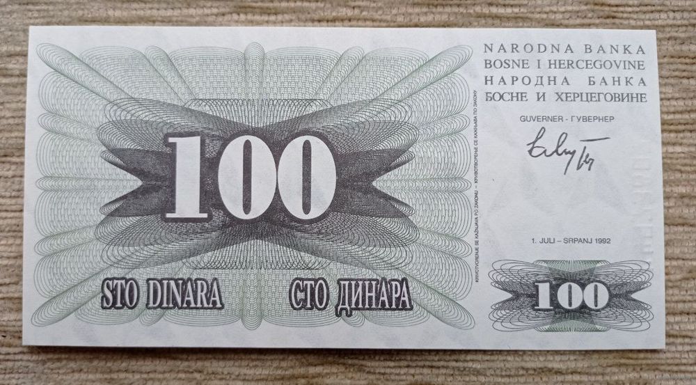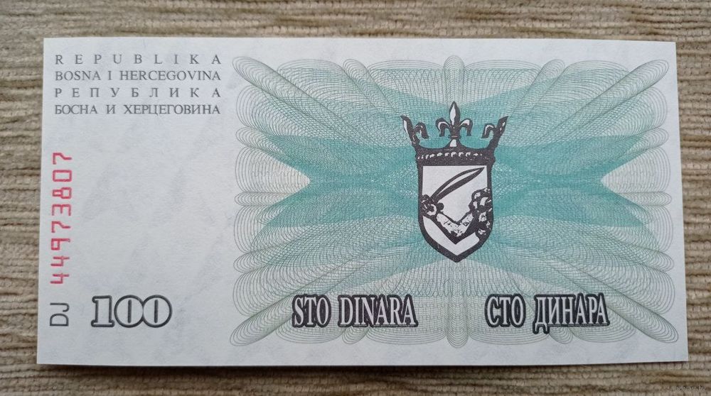Werty71 Босния и Герцеговина 100 динаров образца 1992 года UNC банкнота