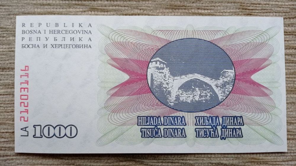 Werty71 Босния и Герцеговина 1000 динаров образца 1992 года UNC банкнота