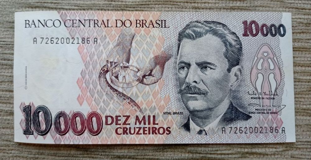 Werty71 Бразилия 10000 крузейро 1991 1992 1993 UNC банкнота Змея Змеи Кобра