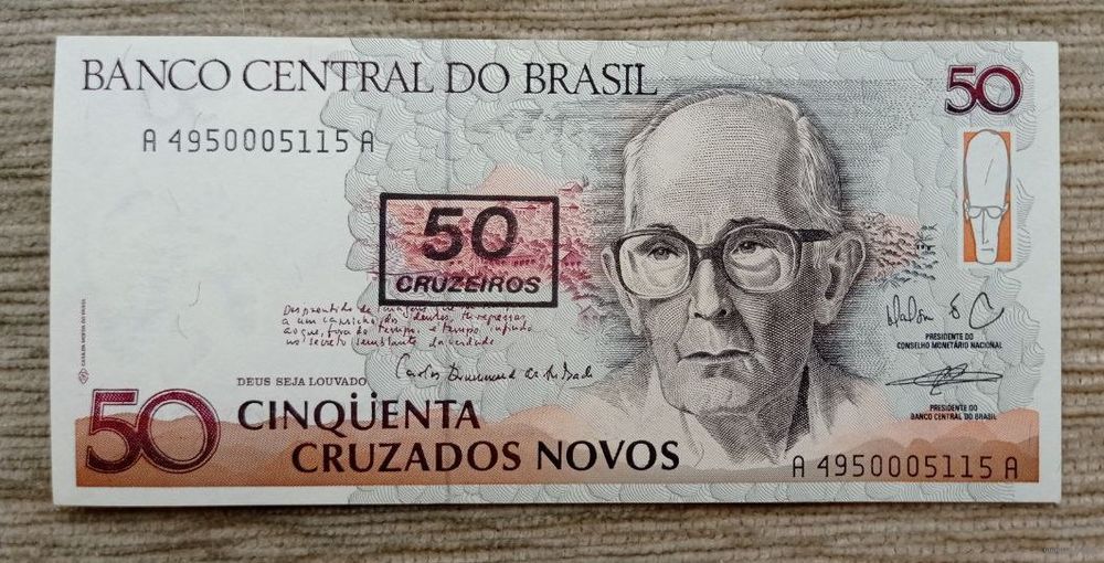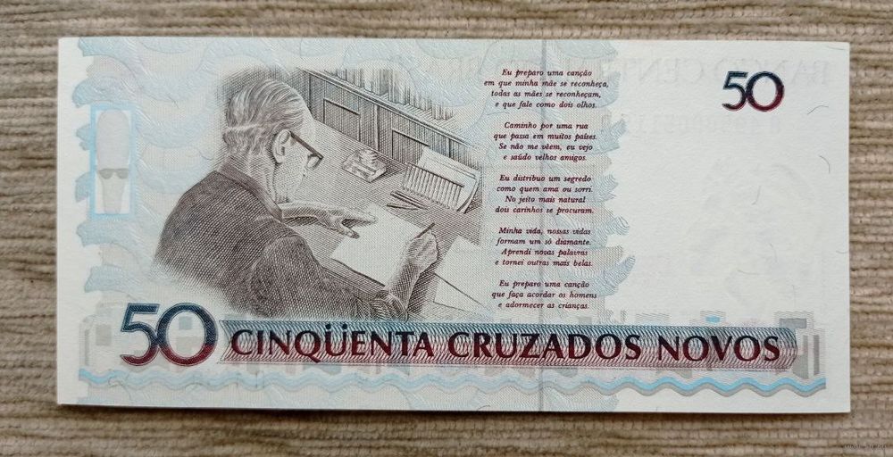 Werty71 Бразилия 50 Крузейро 50 Крузадо 1990 UNC банкнота