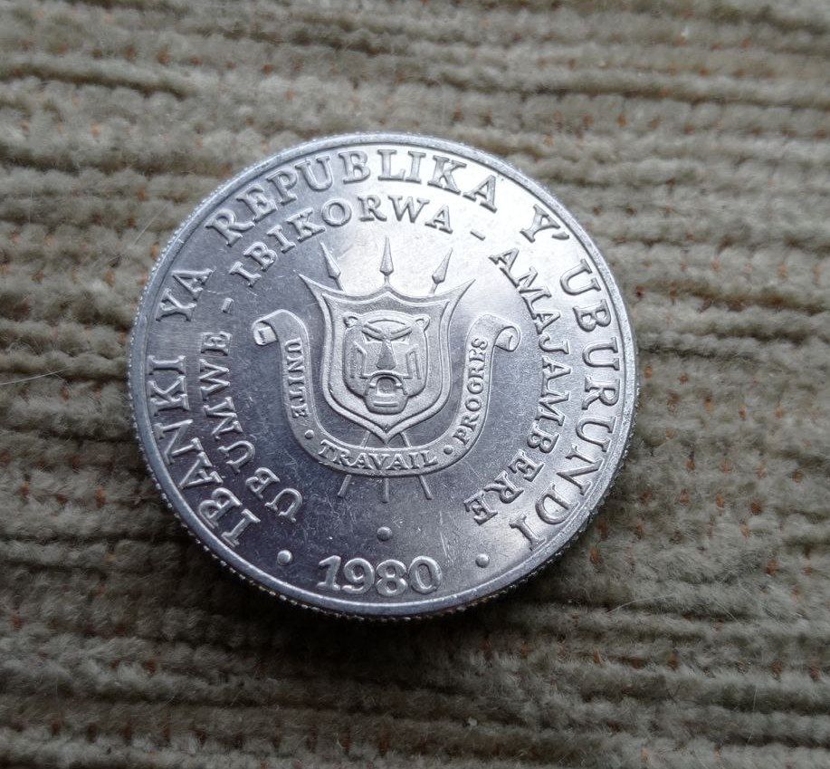 Werty71 Бурунди 5 франк 1980 Единство Труд Прогресс