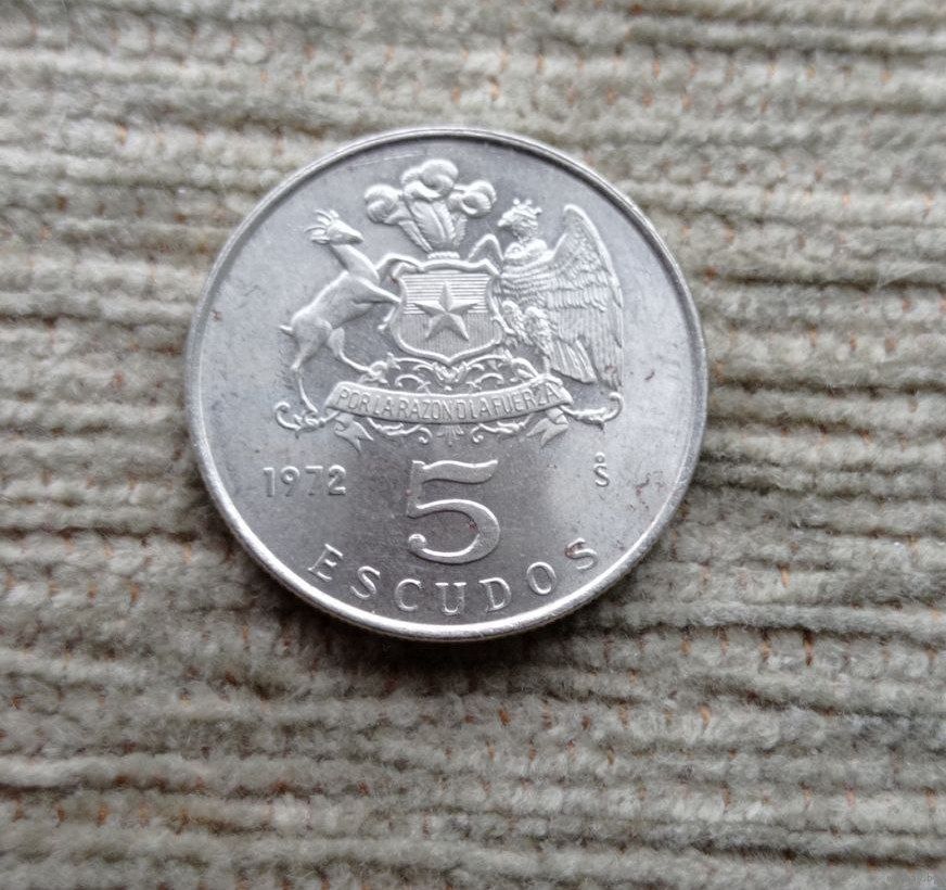 Werty71 Чили 5 Эскудо 1972 Всадник на Лошади Индеец Герб