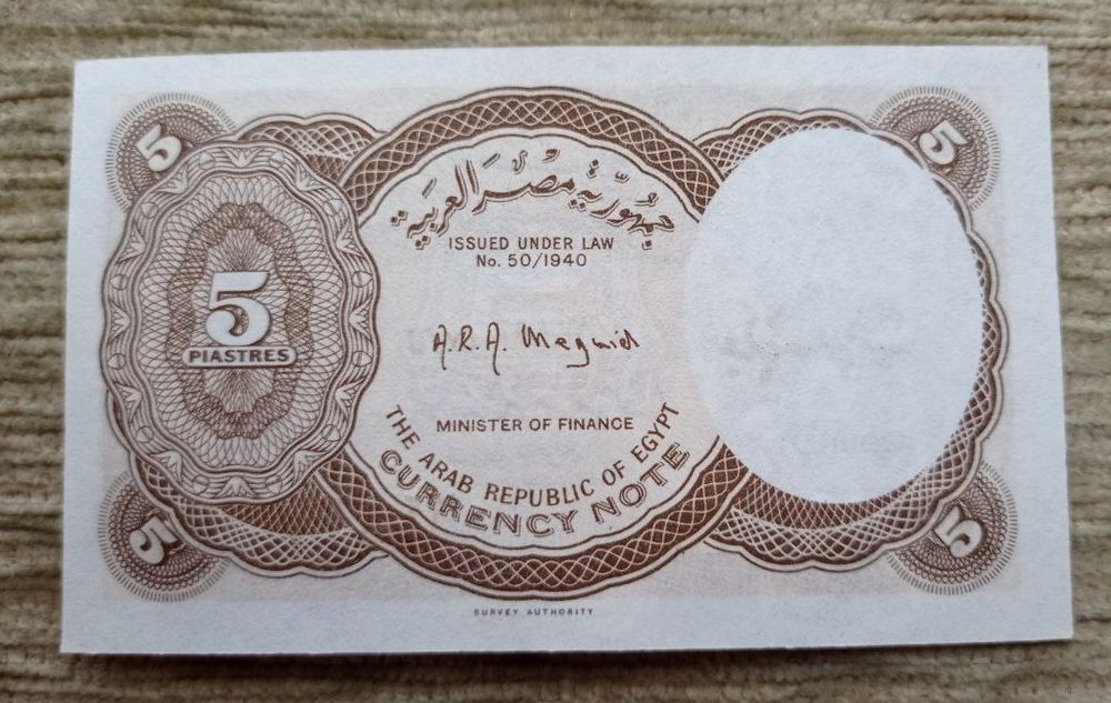 Werty71 Египет 5 Пиастров 1971 UNC банкнота пиастр подпись Megiud