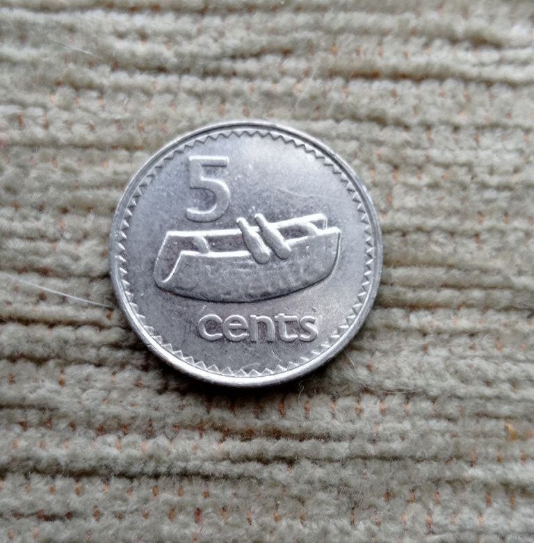 Werty71 Фиджи 5 центов 1992 Средний портрет Королевы Лали фиджийский барабан