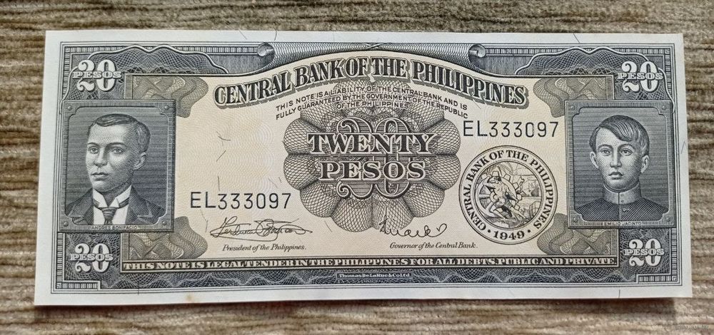 Werty71 Филиппины 20 песо 1949 Маркос Ликарос (1965-1969) UNC Банкнота пятнышко Филиппинские острова