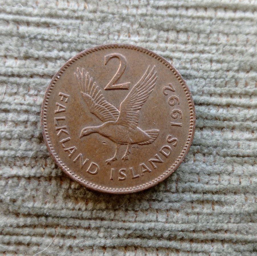 Werty71 Фолклендские острова 2 пенса 1992 Фолкленды Магелланов Гусь