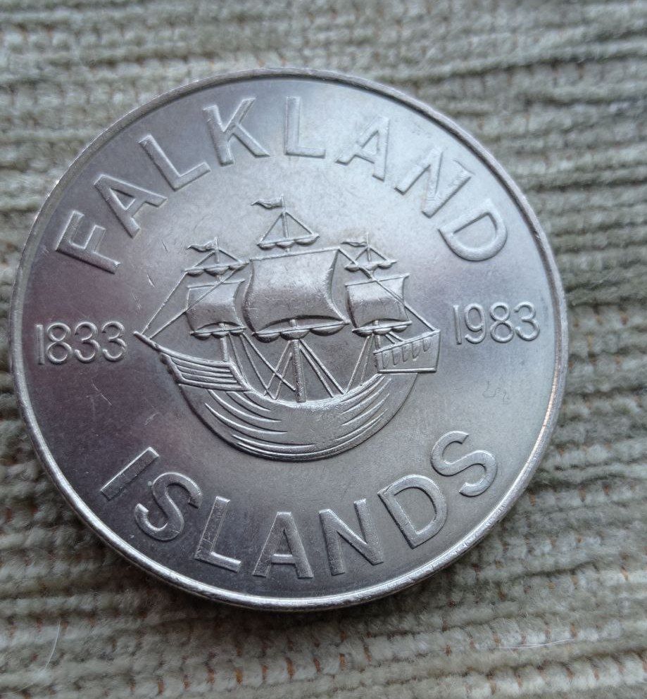 Werty71 Фолклендские острова 50 пенсов 1983 150 лет Британскому управлению Корабль Фолкленды