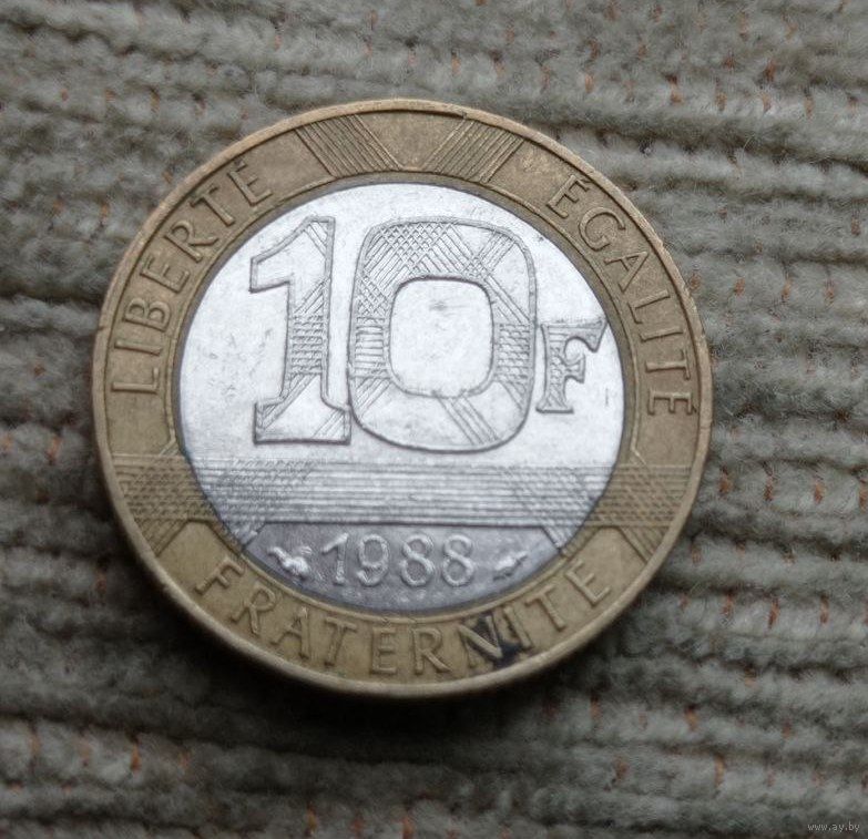 Werty71 Франция 10 Франков 1988 биметалл Ангел Дух Свободы