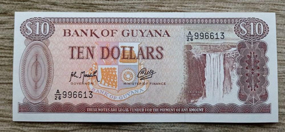Werty71 Гайана 10 долларов 1992 UNC банкнота